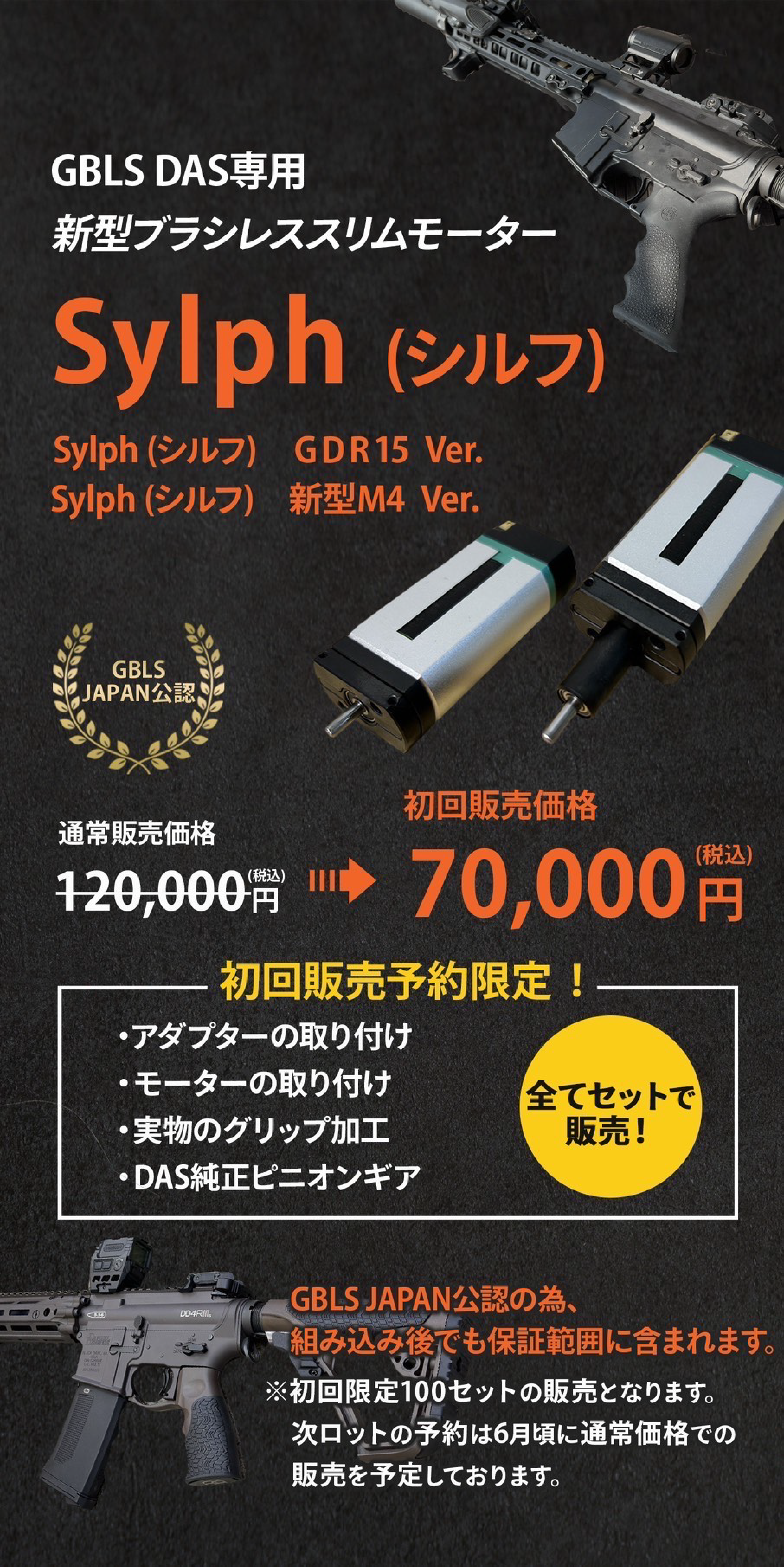 新発売のブラシレススリムモーター”Sylph(シルフ)”は、弊社通常スリムモーターに比べ回転数が約35.85%向上しており、驚くほどキレのあるレスポンスとガスブローバックエアガンに引けを取らないリコイルを実現しました!